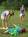 Mezitím jsme museli zvíře odprosit za to, že ho potřebujeme pro svoji obživu. Zvířat jsme nalovili dost, takže máme s jídlem na pár dní vystaráno.