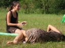 Mezitím jsme museli zvíře odprosit za to, že ho potřebujeme pro svoji obživu. Zvířat jsme nalovili dost, takže máme s jídlem na pár dní vystaráno.