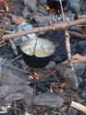 dnešní den byl pro mne velmi poučný. Naučil jsem se poznávat zebry podle zadku a nosorožce podle nosu. Dodnes jsem si myslel, že zebra je prostě zebra a přitom zebra obecná vlastně vůbec neexistuje. Také jsme odpoledne našli velkou kaluž, kterou naplnila včerejší večerní bouřka, takže jsme se odpoledne mohli vykoupat. Pak nás čekal nejtěžší úkol dnešního dne. Jak jsem již včera psal, zásoby z letadla jsou fuč a tím pádem jsme se dnes museli pustit do vaření. Bohužel musím přiznat, že to vůbec nebylo lehké. Dosud jsem se domníval, že s mikrovlnnou troubou již umím zacházet celkem obratně a svůj popcorn si umím připravit do dvou minut již napoprvé. Při přípravě ohniště i při vaření mě ale zaskočilo několik nečekaných problémů a celá záležitost se značně protáhla. Například jsme zjistili, že cibuli je dobré nejdříve nakrájet, a pak teprve vařit. Nakonec jsme se ale všichni dobře najedli a příště to možná stihneme i dřív. Dnes nám také onemocněli někteří členové naší výpravy a tak jsme večer museli vyrazit za křováckými šamany pro léčivou květinu a zaklínadlo. Byla to dlouhá noční cesta, ale lék jsme přinesli a naše kamarády jsme vyléčili.