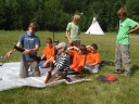 dopoledne jsme s holkama hrály hry na beachi. Hrály jsme petanque, přehazku a přehazkovolejbal. Nacvičovaly jsme si i křovácký tanec. Po obědě jsme se přesunuly do safari. Tentokrát po nás Křováci chtěli, abychom ulovily co nejvíce divokých zvířat: gepardy, hyeny, gazely, kobry.. Lovení nám ale stěžovali křováčtí myslivci, kteří lovu zabraňovali. Přesto jsme ulovily hodně divoké zvěře. Poté jsme se šly posilnit lehkou svačinkou. Potom náš 5. oddíl převzali dva mladí křováci, kteří si zkusili nás vést. Prožily jsme s nimi zábavné odpoledne. Dnes večer nás čeká milé překvapení v podobě letního křováckého kina. Brzy se ozveme.