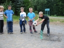 dopoledne jsme s holkama hrály hry na beachi. Hrály jsme petanque, přehazku a přehazkovolejbal. Nacvičovaly jsme si i křovácký tanec. Po obědě jsme se přesunuly do safari. Tentokrát po nás Křováci chtěli, abychom ulovily co nejvíce divokých zvířat: gepardy, hyeny, gazely, kobry.. Lovení nám ale stěžovali křováčtí myslivci, kteří lovu zabraňovali. Přesto jsme ulovily hodně divoké zvěře. Poté jsme se šly posilnit lehkou svačinkou. Potom náš 5. oddíl převzali dva mladí křováci, kteří si zkusili nás vést. Prožily jsme s nimi zábavné odpoledne. Dnes večer nás čeká milé překvapení v podobě letního křováckého kina. Brzy se ozveme.